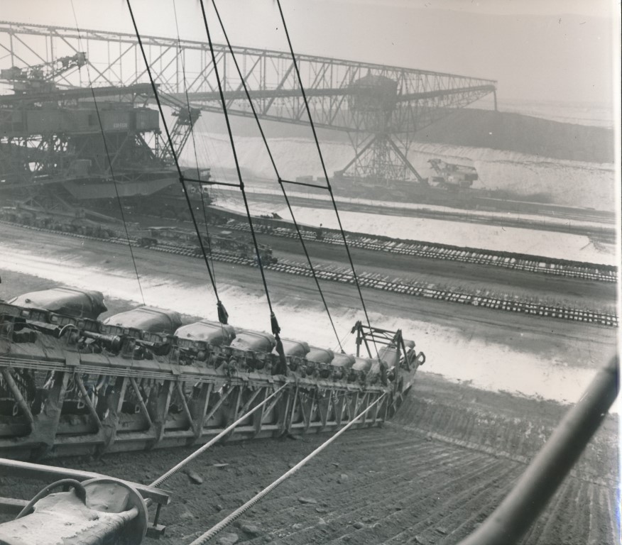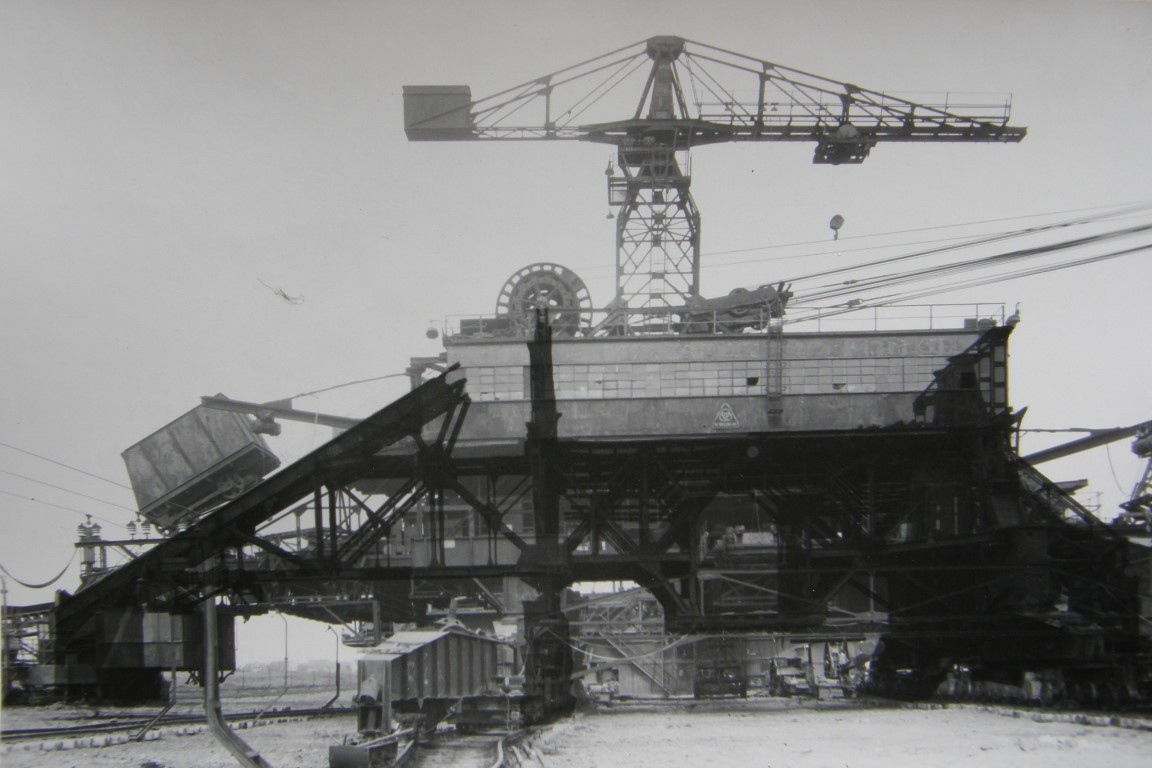 Montage Bagger 2 etwa 1939 Blick von Bagger2 zu Bagger18 und Hauptbrücke 1971