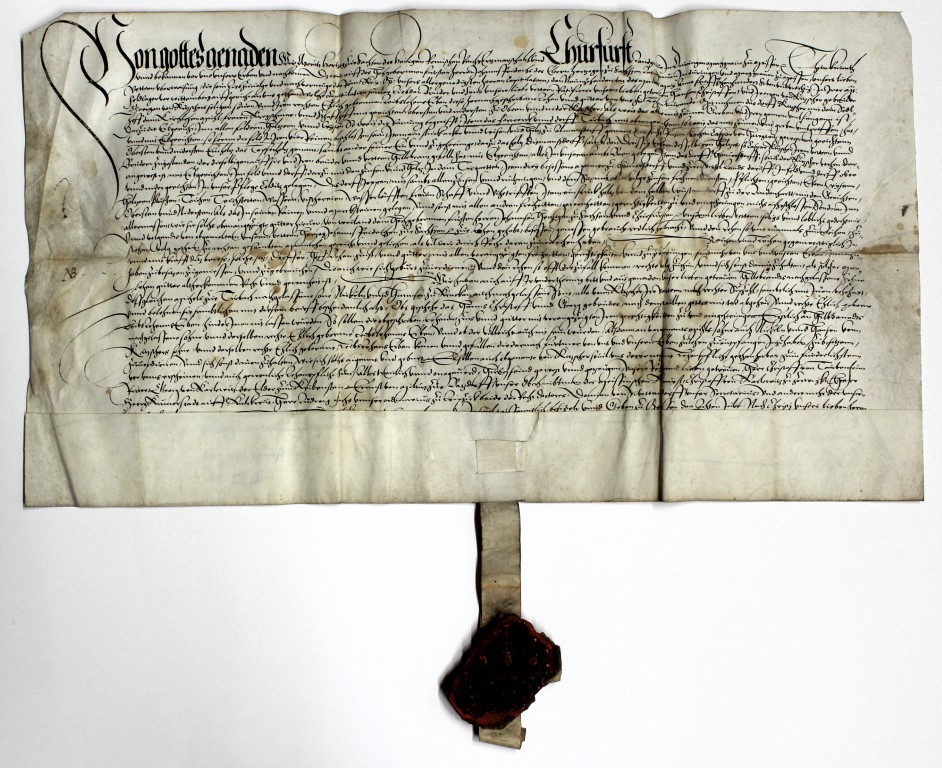 Im März 2023 hatten wurde eine Verkaufsurkunde als Objekt des Monats vorgestellt. Dabei sollte das Gut Zöpen samt zugehörigen Gütern an die von Kitzscher verkauft werden. Ebenfalls in diesem Konvolut befand sich eine Belehnungsurkunde von 1548. In ihr bestätigte der neue Kurfürst Moritz von Sachsen (1521 – 1553) die Besitzungen derer von Kitzscher. Diesem Ereignis ging der, nachfolgend kurz beschriebene, Schmalkaldische Krieg voraus.